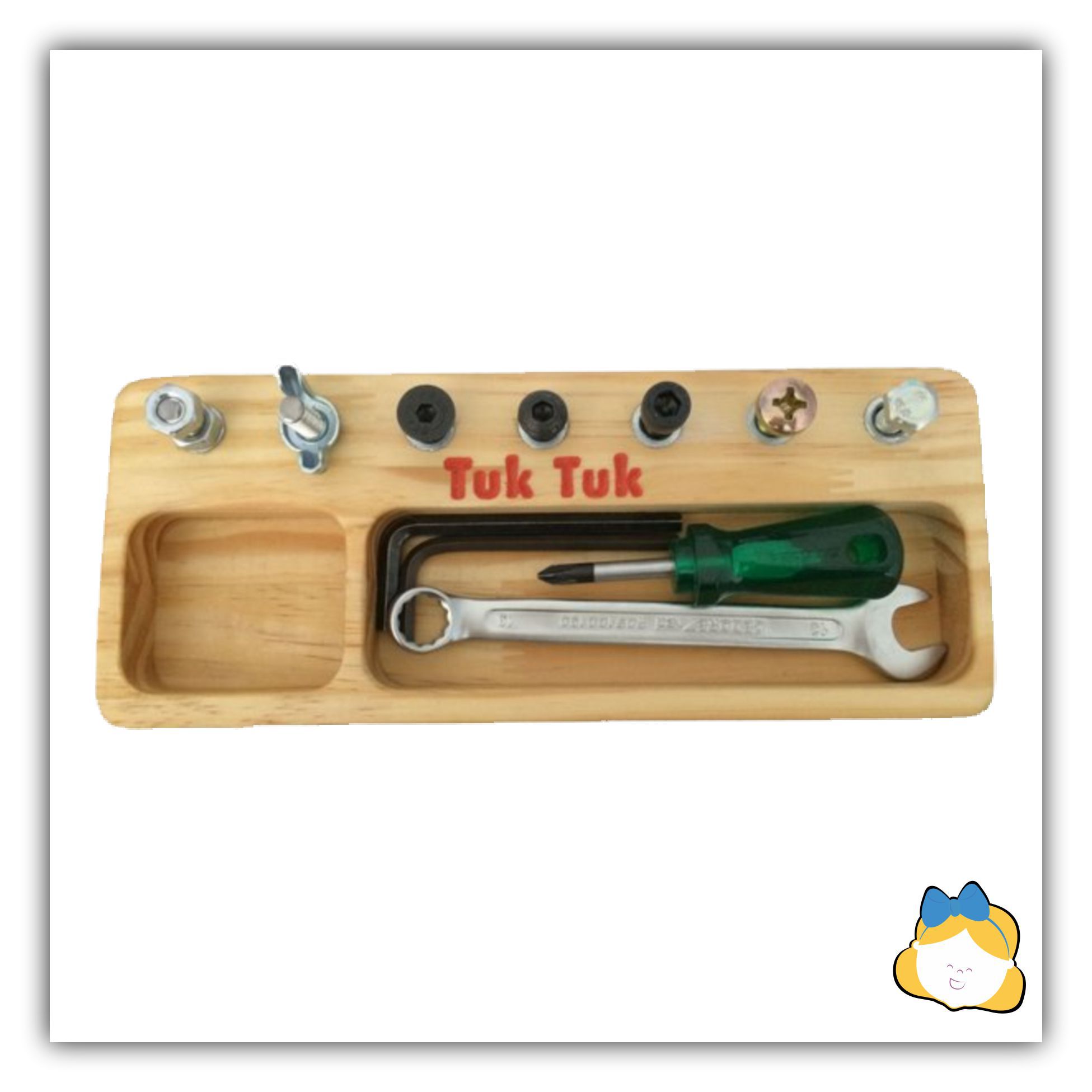 - A Placa de Parafuso Tuk Tuk cria habilidades motoras finas.