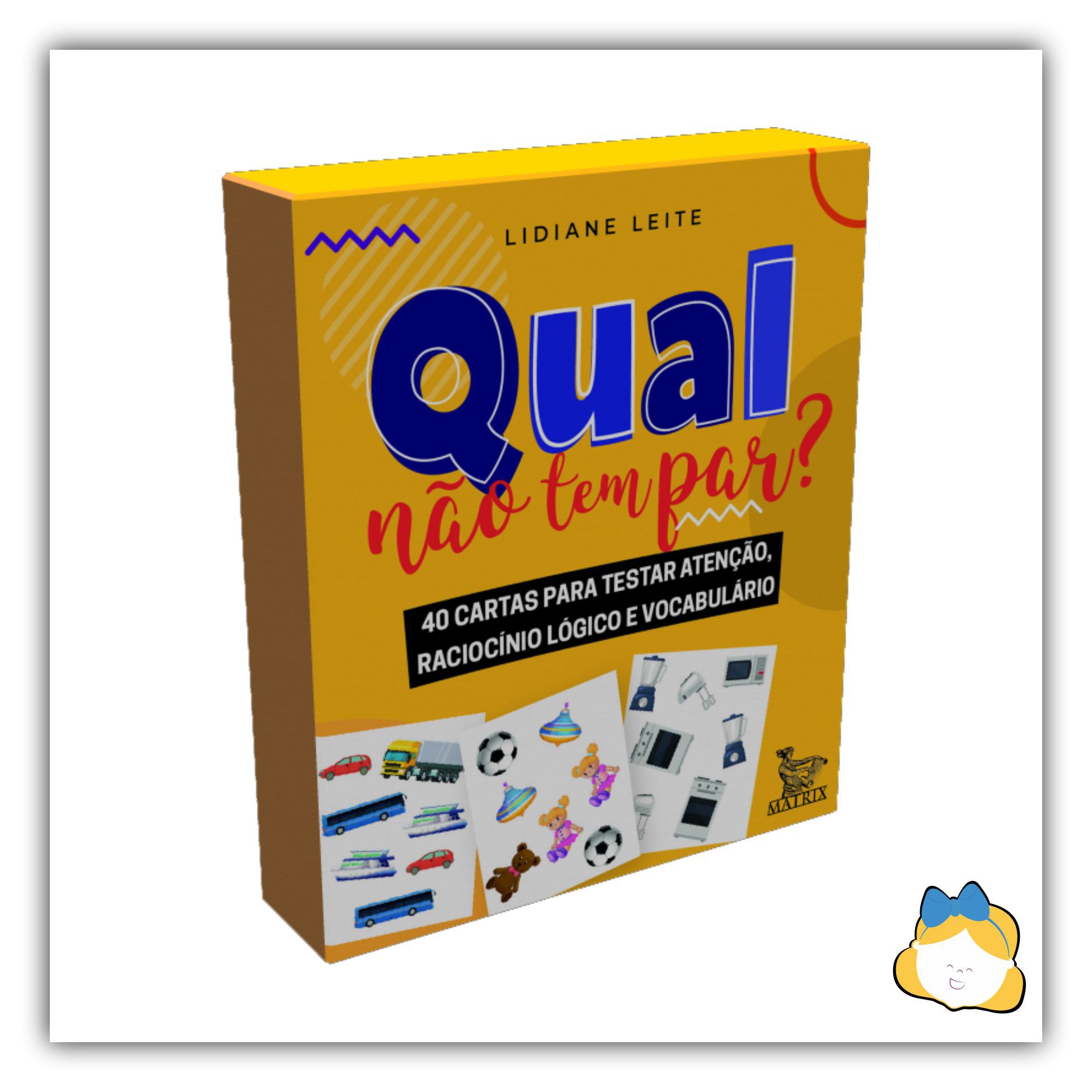 - Neste livro-caixinha estão 40 cartas, cada uma com 7 imagens para que você identifique a figura que não está repetida.